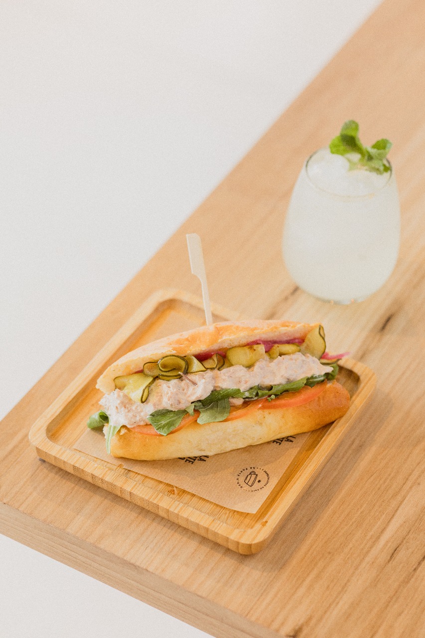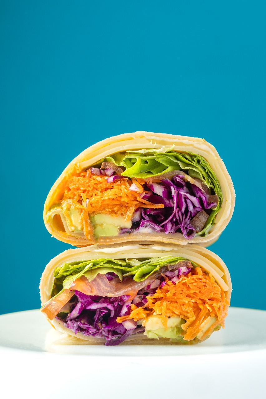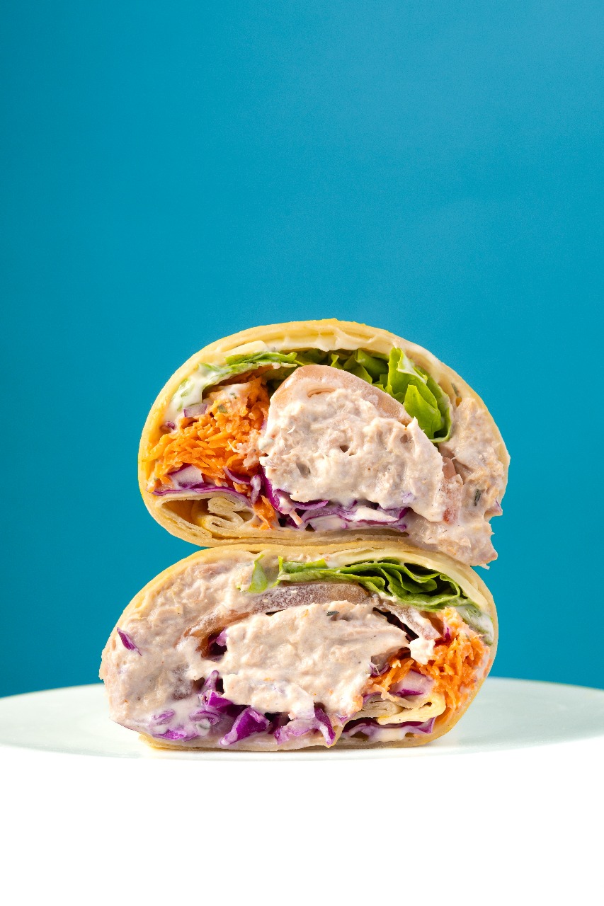 Crema de atún, queso, lechuga, tomate, zanahoria, repollo, mayonesa de hierbas